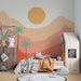 Omvandla ditt barns rum till en riktig mysig plats med denna barn tapet inspirerad av ökenlandskap. De mjuka tonerna av rosa och orange skapar en varm atmosfär medan stiliserade palmer stolt reser sig framför vågande berg. En dekor som inbjuder till eskapism och drömmar.