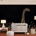 Omvandla ditt barns rum till en förtrollande värld med vår dinosaurieblommiga och stjärnfyllda tapet. Denna fängslande design visar en majestätisk dinosaurie gjord av färgglada blommor mot en bakgrund av stjärnklar natt, vilket skapar en magisk och lugnande atmosfär.