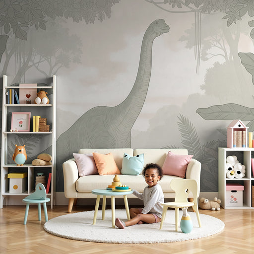 KidsWallOmvandla ditt barns rum till en fascinerande förhistorisk värld med denna barn tapet som visar majestätiska dinosaurier. I en minimalistisk miljö m...