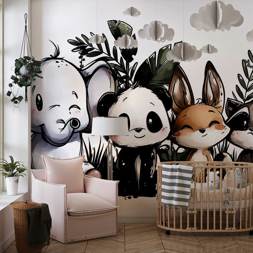 KidsWallOmvandla ditt barns rum till en förtrollande värld med denna barnrumstapet med bedårande djur. En busig elefant, en leende panda, en slug räv och e...
