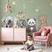 Barntapet | Söta djur under gula stjärnor och salvia grönt bakgrund