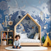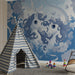 Den mjuka blå bakgrunden och de detaljerade mönstren skapar en lugnande och poetisk atmosfär, perfekt för ett barns rum. Denna förtrollande tapet ger en touch av magi och fantasi som kommer att glädja både små och stora.