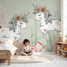 Pastellnyanserna av grönt och rosa skapar en lugnande atmosfär, perfekt för att främja sömn och fantasins uppvaknande. Varje enhörning, smyckad med blomkransar, är omsorgsfullt ritad för att fånga barndomens oskuld och magi. Denna förtrollande dekor förvandlar rummet till en verklig drömsk plats.