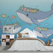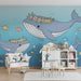 Animaux marins Baleine Bleu Bulle Bébé Floral Poisson