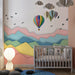 Barntapet | Färgglada luftballonger över en pastellvågig landskap