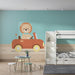Ge dig ut på ett lekfullt äventyr med denna barn tapet som visar en glad lejon som kör sin bil. Med sin fluga och sitt strålande leende ger lejonet en touch av glädje och entusiasm till ditt barns rum.