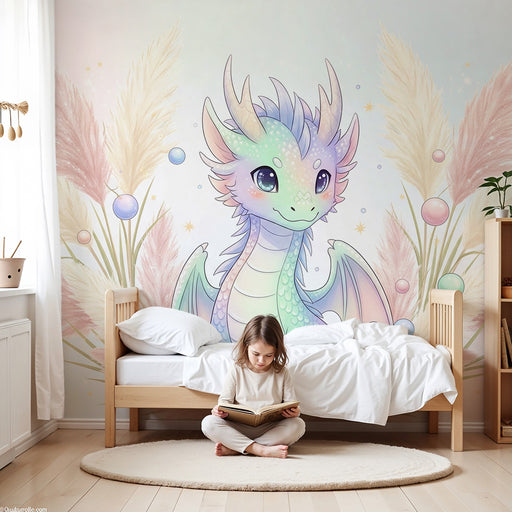 KidsWallOmvandla ditt barns rum till en förtrollande värld med denna barn tapet som visar en bedårande liten drake i pastellfärger. Med sina glittrande fjä...