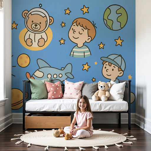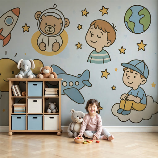 KidsWallOmforma ditt barns rum till en interstellär värld med vår rymdäventyr tapet. Denna lekfulla design visar raketer, stjärnor och en söt björn i astro...