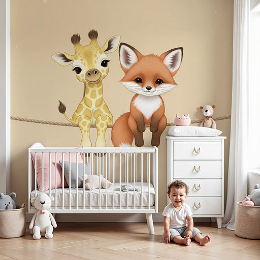 KidsWallOmvandla ditt barns rum till en förtrollande plats med denna barnrumstapet med söta djur. En leende giraff, en gosig koala och en busig räv står på...