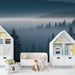 Omvandla ditt barns rum till en lugn plats med denna barn tapet som representerar en mystisk skog insvept i dimma. Silhuetterna av majestätiska träd framträder i lugnande blå nyanser och skapar en fridfull och fängslande atmosfär.