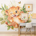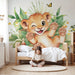 Förvandla ditt barns rum med vår tapet med liten lejon och glada fjärilar. Denna bedårande design visar en busig lejonunge omgiven av gröna blad och gula fjärilar, vilket skapar en lekfull och varm atmosfär.