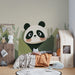 Nyanserna av grönt och de delikata bladmönstren ger en naturlig och uppfriskande touch till rummet, medan den leende pandan lägger till en not av glädje och ömhet. Varje detalj är noggrant utformad för att väcka de små barnens fantasi och stimulera deras nyfikenhet.