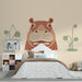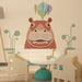De mjuka nyanserna av beige och grönt, tillsammans med delikata vattenväxter, ger en touch av natur och lugn till rummet. Varje detalj, från flodhästens vänliga leende till de rundade formerna på växterna, är utformad för att stimulera nyfikenheten och främja en lugnande miljö.