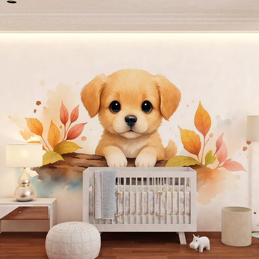 KidsWallDenna barntapet presenterar en bedårande valp omgiven av höstlöv i varma och delikata färger. Perfekt för att skapa en atmosfär av mjukhet och natu...