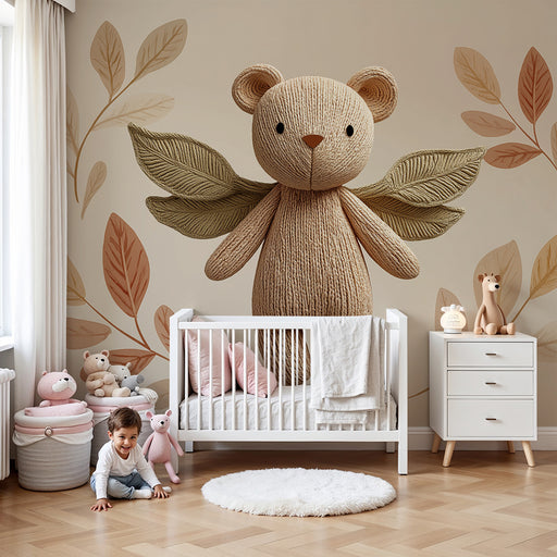 Visa alla detaljerBarntapet | Vingad björn omgiven av delikata blad