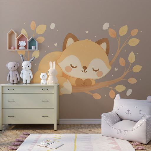 KidsWallSkapa en mjuk och lugnande atmosfär med vår sömniga rävpapper, perfekt för barnets rum. Denna bedårande design visar en liten räv som sover fridful...