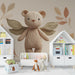 Omgiven av löv med varma nyanser av beige, terrakotta och grönt, skapar denna dekor en lugnande och tröstande atmosfär. Varje detalj, från de ömtåliga vingarna till den mjuka formen av björnen, är utformad för att stimulera fantasin samtidigt som den ger en touch av magi till utrymmet.