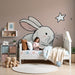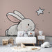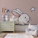 Kaninen, med sina fina drag och mjuka nyanser, framhävs mot en lugnande pastellbakgrund. De glittrande stjärnorna lägger till en touch av magi och inbjuder till fantasifulla och stjärnklara drömmar. Varje detalj är noggrant utformad för att ge värme och ömhet till ditt barns utrymme.