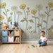 Omvandla ditt barns rum till en oas av mjukhet med denna barntapet som visar en charmig scen med kaniner omgivna av strålande blommor. De bedårande kaninerna, i mjuka nyanser av vitt och beige, verkar leka och interagera i en trädgård fylld med gula och vita blommor, vilket skapar en glad och lugnande atmosfär.