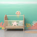 Dyk ner i en förtrollande havsvärld med denna barntapet som visar en bedårande leende manet som simmar bland levande koraller. De mjuka turkosa tonerna och de pastellfärgade nyanserna av korall skapar en lugnande atmosfär, perfekt för ditt lilla barns rum.