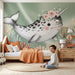 Dyk ner i en magisk havsvärld med denna barnrumstapet som visar en bedårande narval med en blomsterkrans. Denna vackra havslevande varelse simmar fridfullt bland koraller i mjuka och varma färger, vilket skapar en lugn och drömlik atmosfär i ditt barns rum.