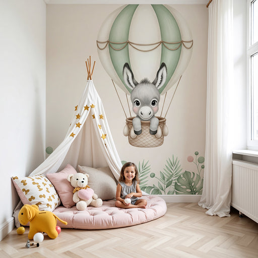 KidsWallGe dig ut på ett luftigt äventyr med denna barntapet som visar en bedårande åsna som flyter i en luftballong. Med sin nyfikna blick och charmiga le...