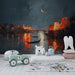 Lägg till en mystisk och varm atmosfär i ditt barns rum med vår romantiska nattlandskap tapet. Denna tapet fångar ljusreflektioner som för tankarna till en upplyst stad vid skymning, vilket skapar en lugnande och fängslande effekt.
