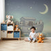 Papier peint chambre bébé | Animaux mignons sur un bateau sous les étoiles