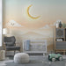 Barntapet | Stjärnhimmel med leende moln och guldmåne
