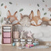 Skapa en mysig kokong i ditt barns rum med denna barnrumstapet som visar bedårande djur som fridfullt sover på en fluffig moln. En räv, en igelkott och andra pälsvänner slappnar av och ger en känsla av ömhet och frid till rummet.