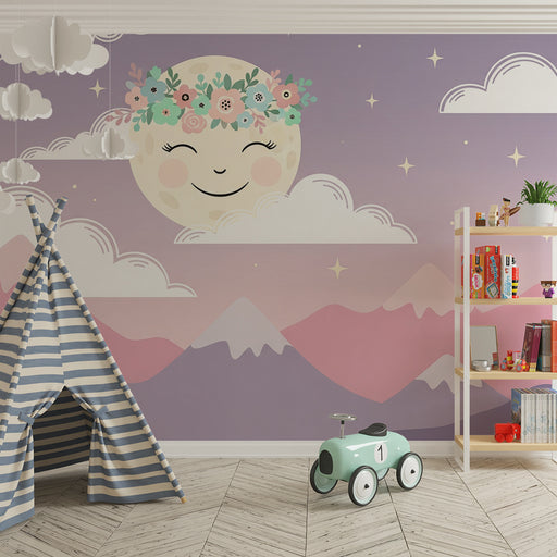 KidsWallRedesigna ditt barns rum till en alltför söt plats med denna barnrum tapet som representerar mjuka berg under en stjärnklar himmel. Den leende sole...