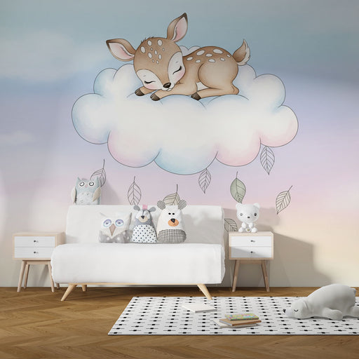 KidsWallFörvandla ditt barns rum till en riktig mjuk kungadöm med denna barntapet . Föreställ dig en söt liten hjort fridfullt sovande på en fluffig mo...