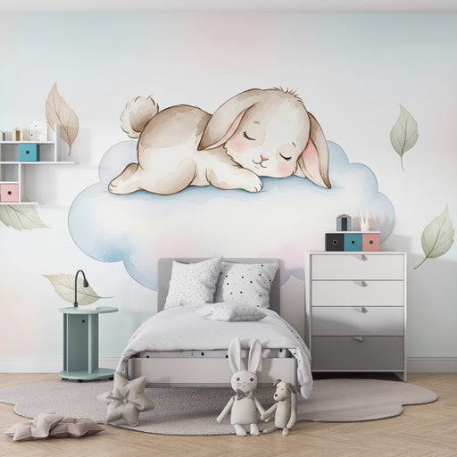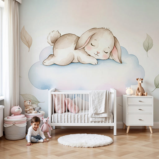 KidsWallSkapa en mjuk och lugnande atmosfär i ditt barns rum med denna barn tapet som illustrerar en bedårande kanin som sover på en fluffig moln. Denna fö...