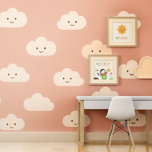 KidsWallLägg till en touch av mjukhet och charm till ditt barns rum med denna barn tapet som visar leende moln. Den mjuka rosa bakgrunden skapar en varm oc...