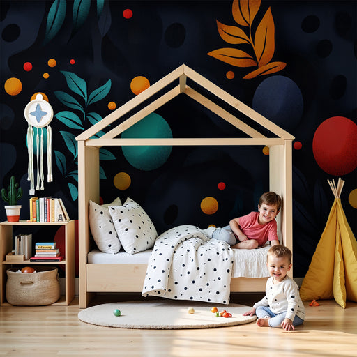 KidsWallUpptäck vår mystiska katt- och färgglada trädgårdstapet, perfekt för att väcka barnets fantasi. Denna förtrollande design visar en stiliserad svart...