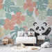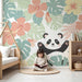 Omvandla ditt barns rum till en lugn plats med denna barnrum tapet som visar en bedårande panda omgiven av lysande tropiska blommor. Hibiskus i mjuka nyanser av rosa och gul, tillsammans med frodiga blad, skapar en varm och välkomnande atmosfär.