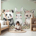 De detaljerade uttrycken hos varje djur, från glada ansiktsuttryck till blommiga mönster, väcker fantasin och främjar en fridfull miljö. De delikata blommorna och bladen lägger till en känsla av friskhet och natur, vilket gör rummet inbjudande och varmt.