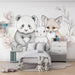 Barntapet | Bedårande djur och blommor på vit bakgrund