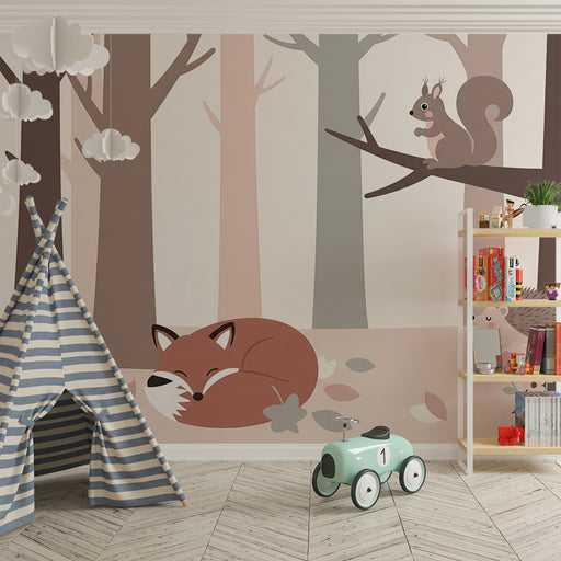 KidsWallTransformez la chambre de votre bébé en un doux refuge avec ce papier peint pour bébé illustrant une scène paisible de la forêt. Un renard endormi,...