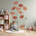 Denna blomster värld skapar en förtrollande dekor där varje detalj fångar ögat, från graciösa stjälkar till delikata kronblad, inbjudande till drömmar och utforskning. Den ljusa bakgrunden framhäver mjukheten i blomfärgerna och gör rummet ljust och inbjudande.
