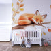 Denna sovande räv tapet ger en touch av mjukhet och lugn till ditt barns rum. Med en charmig räv som sitter på en gren, omgiven av löv i höstfärger, bjuder denna design in till drömmar och frid.