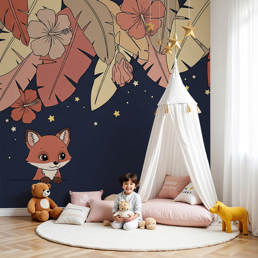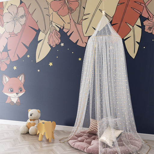 KidsWallOmvandla ditt barns rum till en mystisk oas med denna barn tapet med en leende räv som lyser upp av glittrande stjärnor. På en lugnande nattblå bak...