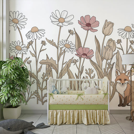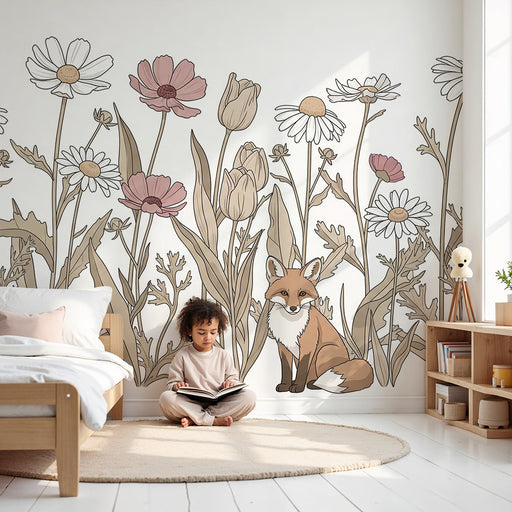 KidsWallFörsköna ditt barns rum med denna barn tapet som kombinerar mjukheten av vilda blommor med den vänliga närvaron av en räv. I en delikat dekor blomm...