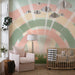 Barntapet | Pastell regnbåge och delikata blommor i en grön äng