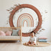 Tillför en touch av magi och mjukhet till ditt barns rum med denna barn tapet som representerar en lugnande regnbåge. Inramad av en terrakottacirkel och prydd med delikata blad skapar detta mönster en varm och välkomnande atmosfär.
