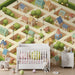 Denna förtrollande dekor stimulerar kreativiteten och erbjuder en plats där varje dag blir en ny upptäckt. De detaljerade husen och trädgårdarna skapar en varm och inbjudande atmosfär, perfekt för en lekplats eller vila.