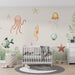 Upptäck vår undervattensäventyr tapet, perfekt för att skapa en lekfull och vattenmiljö i ditt barns rum. Prytt med vänliga havsdjur som en bläckfisk, en sköldpadda, en sjöhäst och maneter, är denna fängslande design perfekt för att stimulera fantasin.