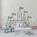 Förvandla din bebis rum till ett verkligt sagoland med denna barntapet som visar en charmig slott omgivet av pastellstjärnor. Färgglada flaggor vajar över tornen och lägger till en touch av magi och glädje till utrymmet.