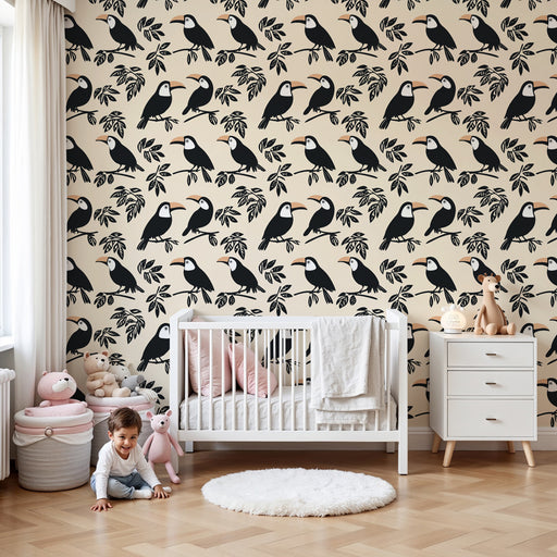 KidsWallTransformera ditt barns rum med denna tropiska tapet, med charmiga tukaner bland känsliga löv. Med sina grafiska mönster i svart och vitt förhöjda ...