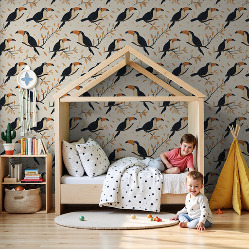 KidsWallLägg till en touch av färg och glädje i ditt barns rum med denna barn tapet som visar två tukaner på en gren. Dessa exotiska fåglar poserar elegant...
